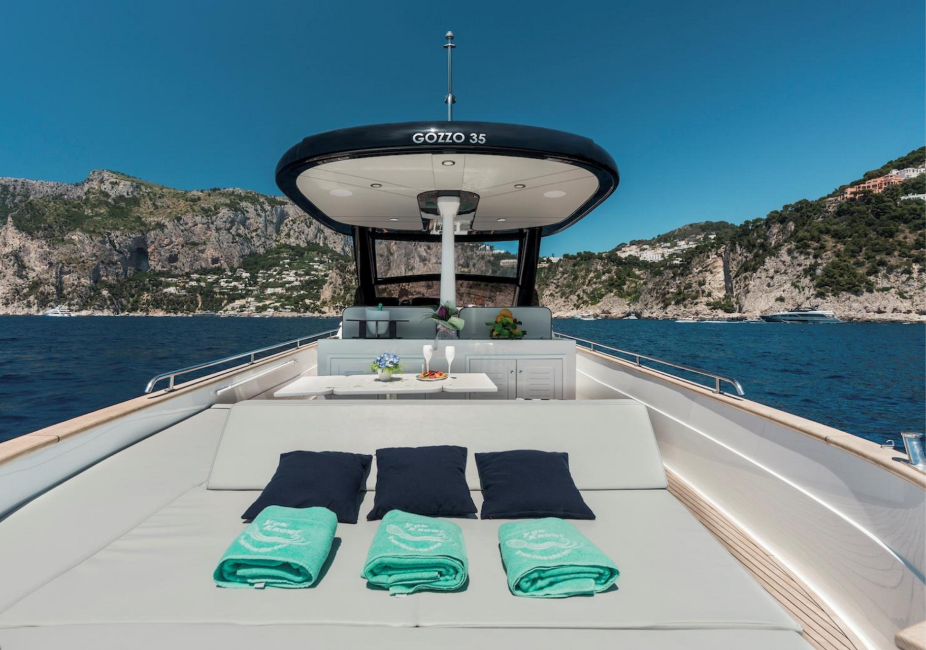 Iconic and refined, the Gozzo 35 Apreamare combines tradition and performance. Perfect for private sea tours, it offers comfort, spacious sunbathing areas, and timeless elegance.